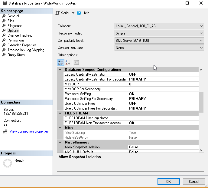 Verify the database compatibility level is set to SQL Server 2019 (150)