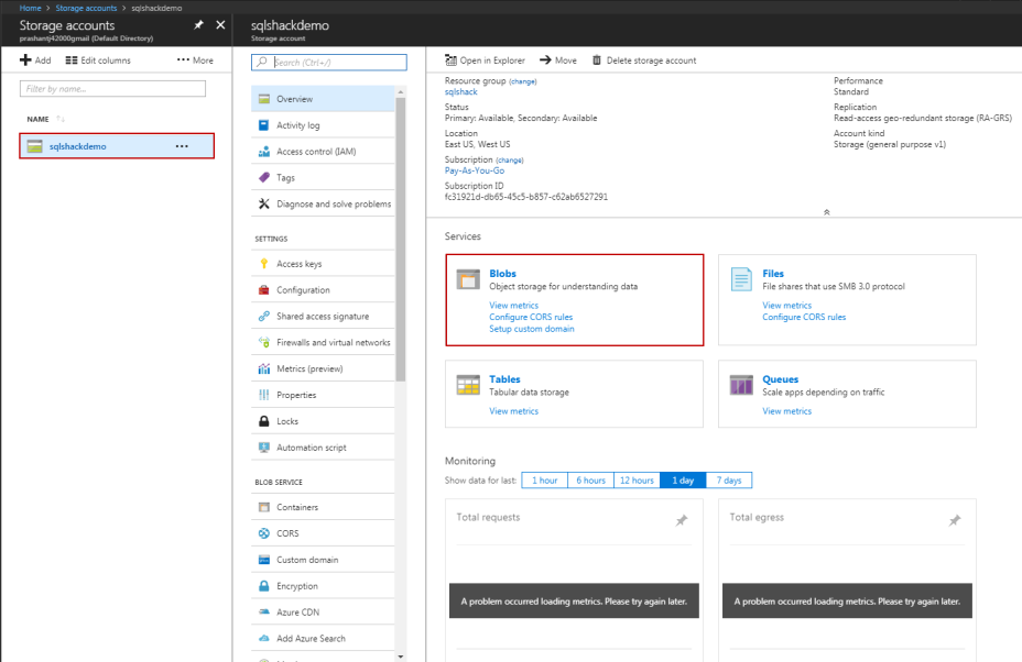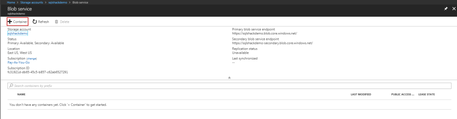 Before we perform the database backup, it’s important to understand the Blob Storage Service and SQL Server key components, and their concepts. To start, let’s do a little prep work to setup Microsoft Azure Create an Azure Storage account. In the first step, we create a storage account at the Azure Portal. Using the Blob Storage Service, we configure the Azure Blob Storage Container.