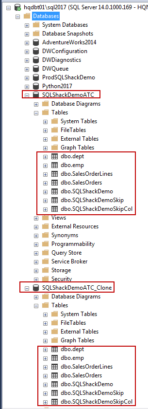 For the demo, I will be restoring the SQLShackDemoATC with a different name SQLShackDemoATC_Clone to the same SQL instance.