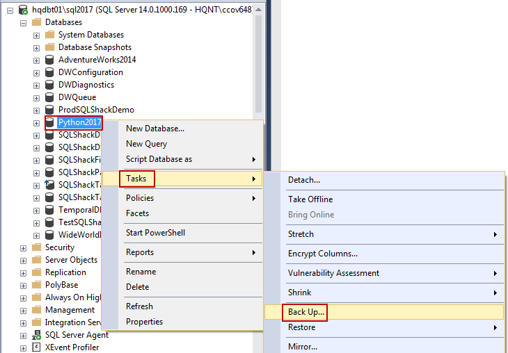 Perform Database backup task using SSMS (SQL Server Management Studio)