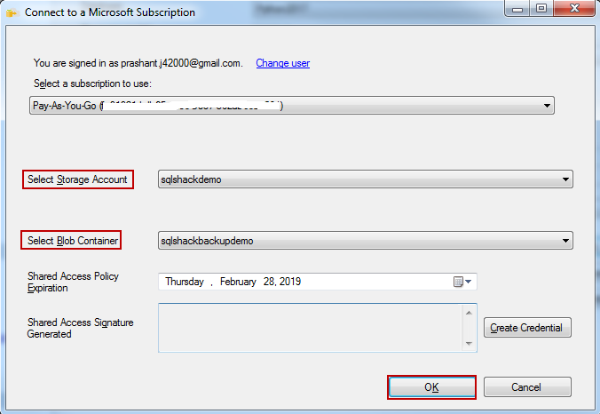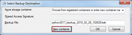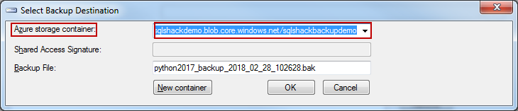 In a similar way go to Select Blob Container, and choose sqlshackbackupdemo