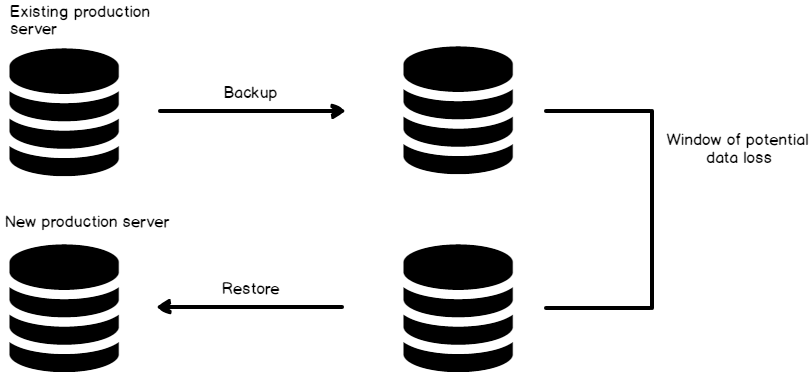 Let us consider a scenario where you’re performing a migration where backing up and restoring the database might take 30 minutes. That means either 30 minutes of downtime or potentially a 30-minute window of lost data. How can we avoid end user downtime and also avoid data loss?