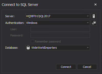 7. Now, let’s run this script(redo.sql) against our newly restored production database. To run, Click redo.sql. This will open up a query execution window. Click Connect and type in the target instance details. Then, click Execute to run the SQL script.