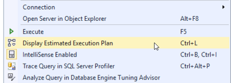 Right-click on the query editor and choose the Display Estimated Execution Plan option, as shown below: