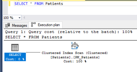 Type the Ctrl+M keyboard shortcut, and the Actual Execution Plan for the submitted query will be Included. In other words, the Actual Execution Plan option will be turned ON for that query, or any query executed in that window. When you execute the query, the Actual Execution Plan will be displayed, as in the snapshot below: