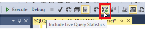 Click on the Include Live Query Statistics icon from the taskbar, as follows: