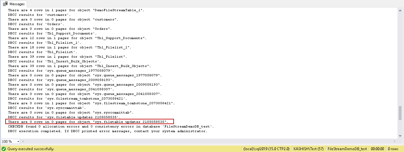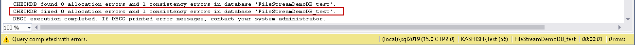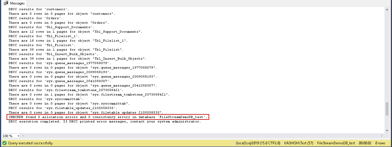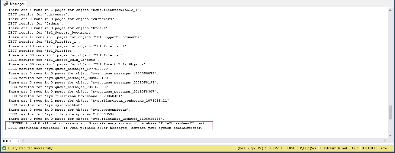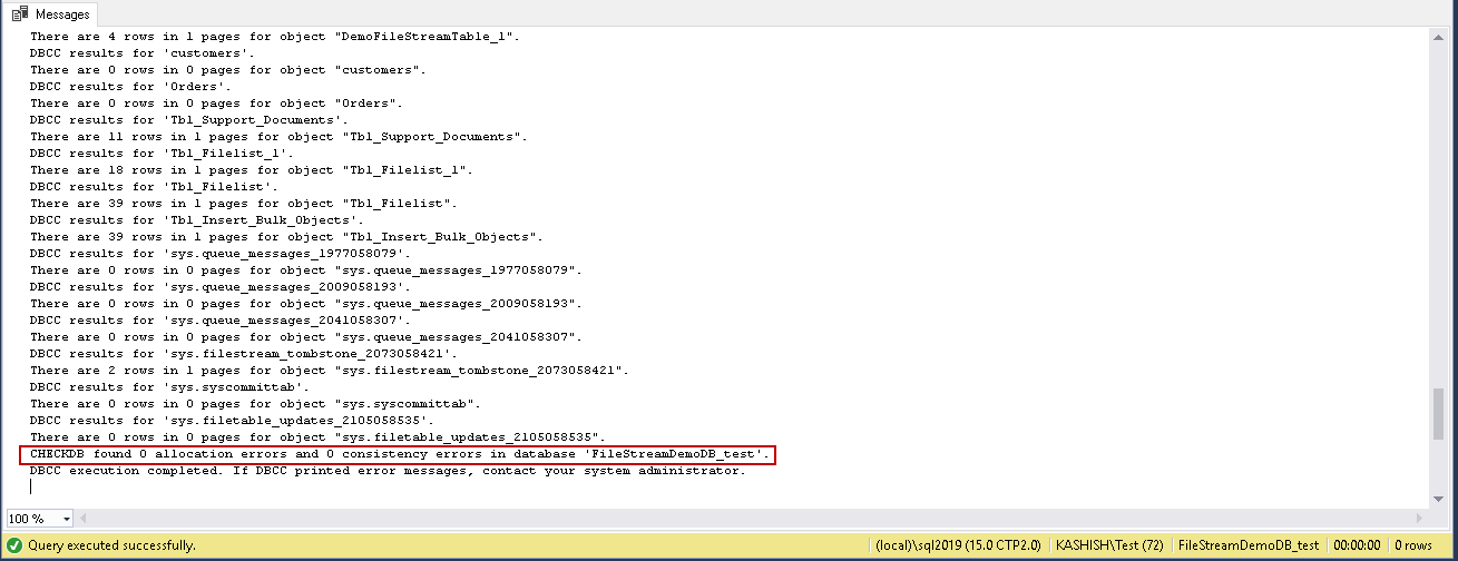 “CHECKDB found 0 allocation errors and 0 consistency errors in database ‘FileStreamDemoDB_test’.”