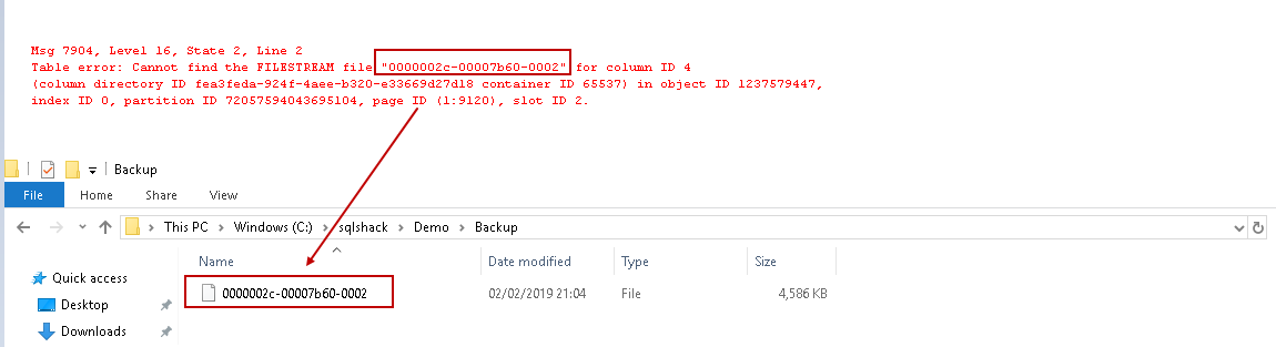 If we are taking regular backups, we can restore the FILESTREAM database in another location and replace the problematic file. In this example, let us consider that you found the file by restoring the FILESTREAM database backup so that we will copy that file into FILESTREAM container.