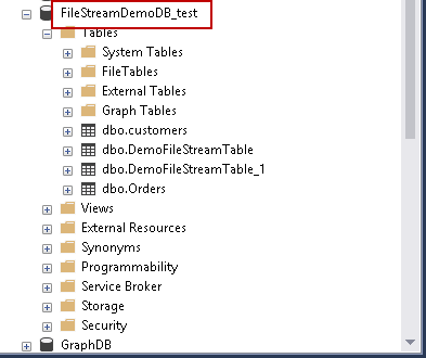 For this demonstration, we’ll use the ‘FileStreamDemoDB_test’ database in our instance.