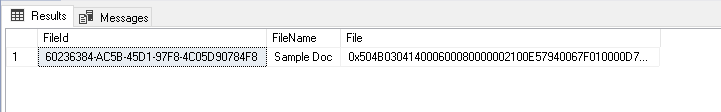Again, perform the database validation stuff. You can find the file now in the SQL Server FILESTREAM container. In the database also, you can see the record.