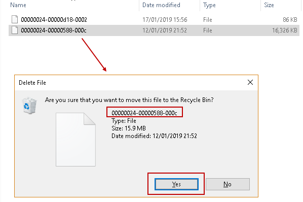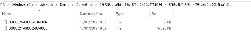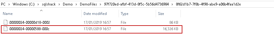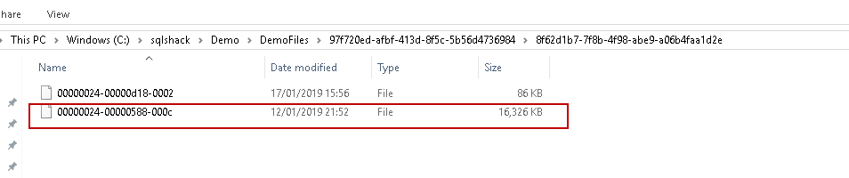 Now, let us generate the recovery scenario. We are going to delete the below-highlighted file from the FILESTREAM container. We do not get any prompt that the file is in use while deleting it from the filesystem.