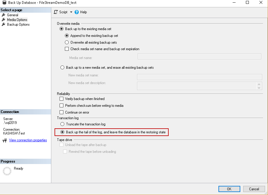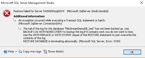 RESTORE LOG FileStreamDemoDB_test FROM DISK = N'C:\Program Files\Microsoft SQL Server\MSSQL15.SQL2019\MSSQL\Backup\backup3.trn'