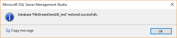 Click on ‘OK’ and database restores successfully now with the filegroup level restore.