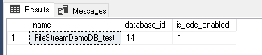 In the output, Value ‘1’ shows that we have successfully enabled the CDC on FILESTREAM database.