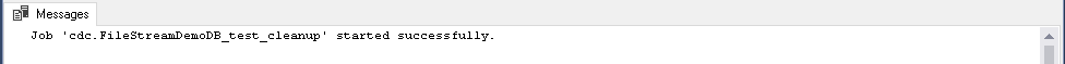 - ‘CDC.FileStreamDemoDB_test_cleanup’: this job cleans up the CDC tables by running the stored procedure sys.sp_MScdc_cleanup_job. By default, it clears any data at least 3 days old from the CDC tracked tables