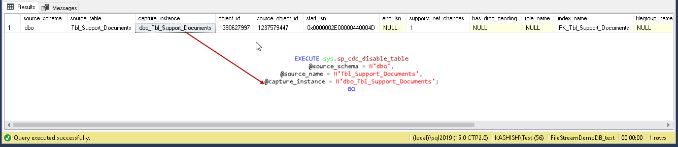 USE FileStreamDemoDB_test GO EXEC sys.sp_cdc_enable_table @source_schema = N'dbo', @source_name = N'Tbl_Support_Documents, @role_name = NULL GO |