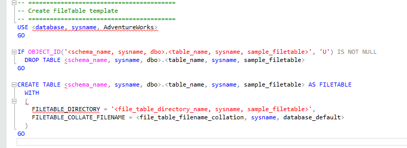 FileTable template in SSMS