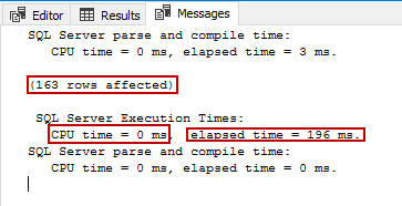 This option gives you the amount of time that has been spent as far as SQL Server is executing this particular query. It also provides you interesting insights into some of the information.