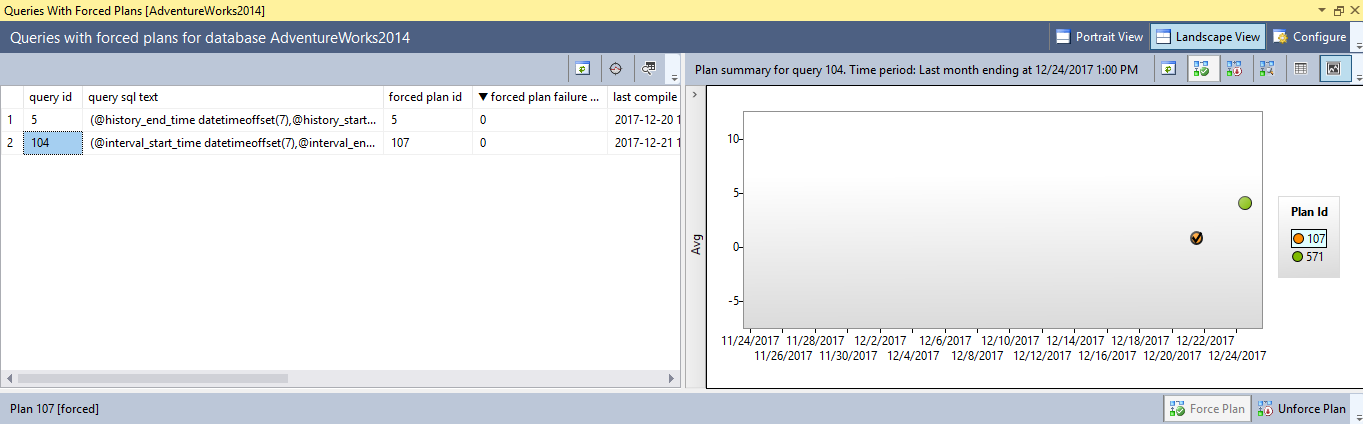 The Queries With Forced Plans built-in report shows all forced Execution Plans for specific queries:
