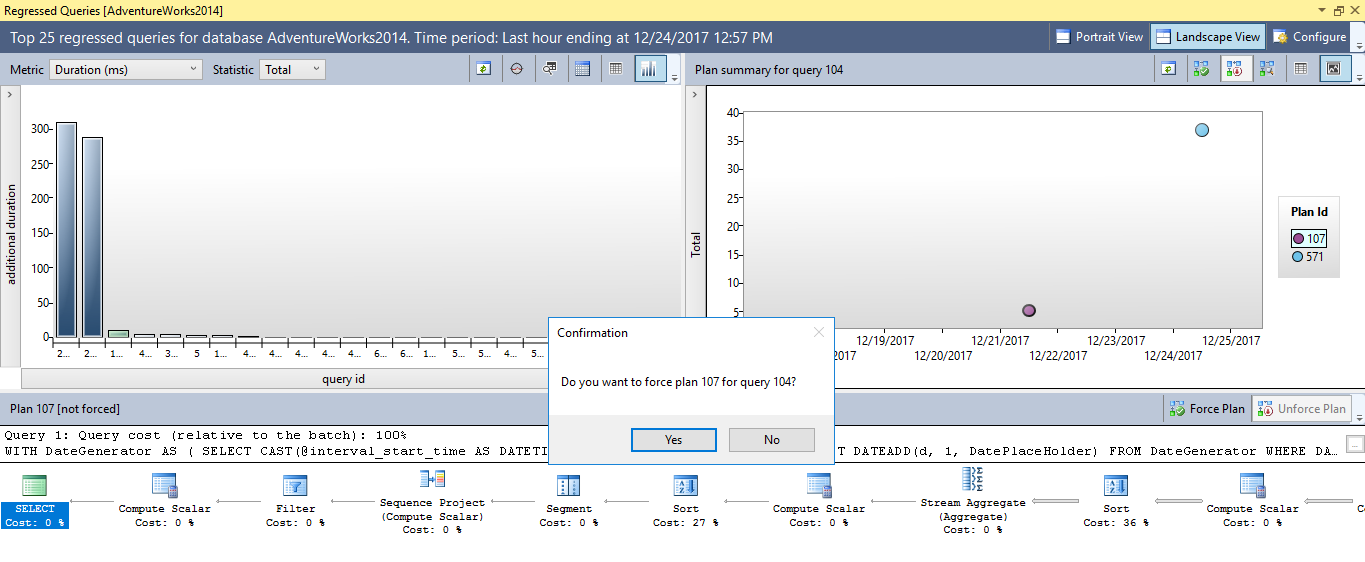 - Get information about query regressions (a new execution plan generated by query engine is worse than the older one). Quickly find performance regression and fixing it by forcing the previous query plan whose performances are much better than a newly generated plan