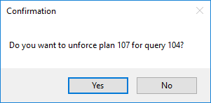 In the Confirmation message box, press the Yes button to confirm removing forced Execution Plan: