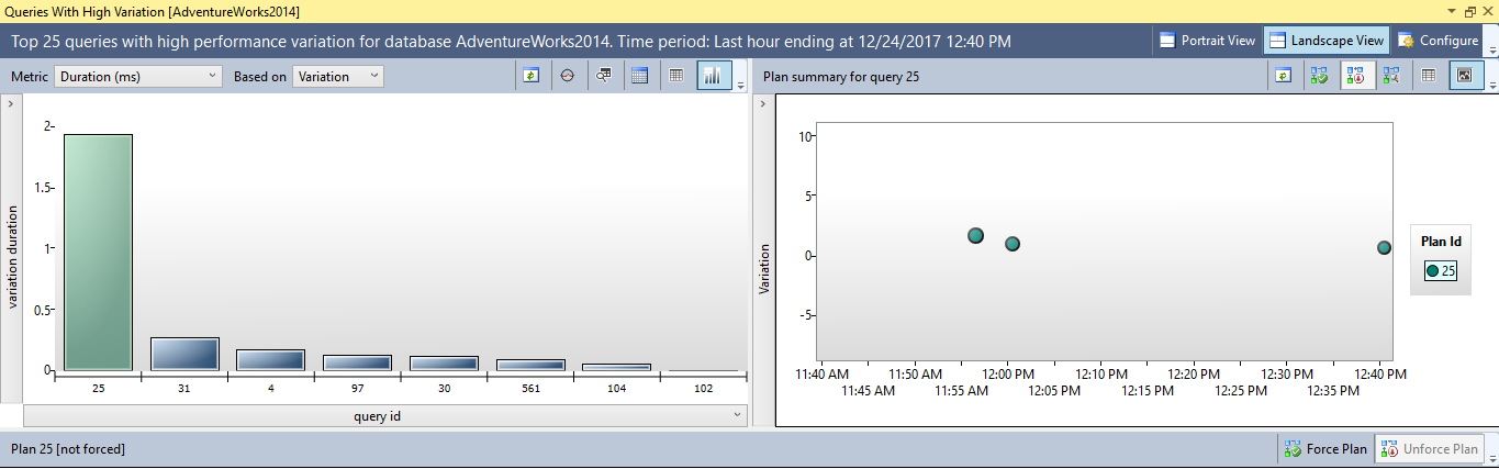 The Queries With High Variation built-in report analyze the queries and show the queries with the most frequent parameterization problems: