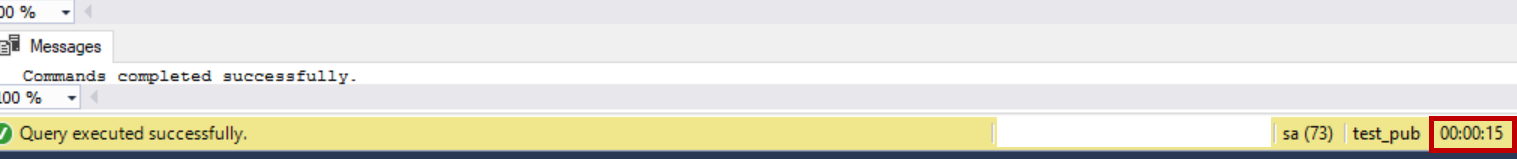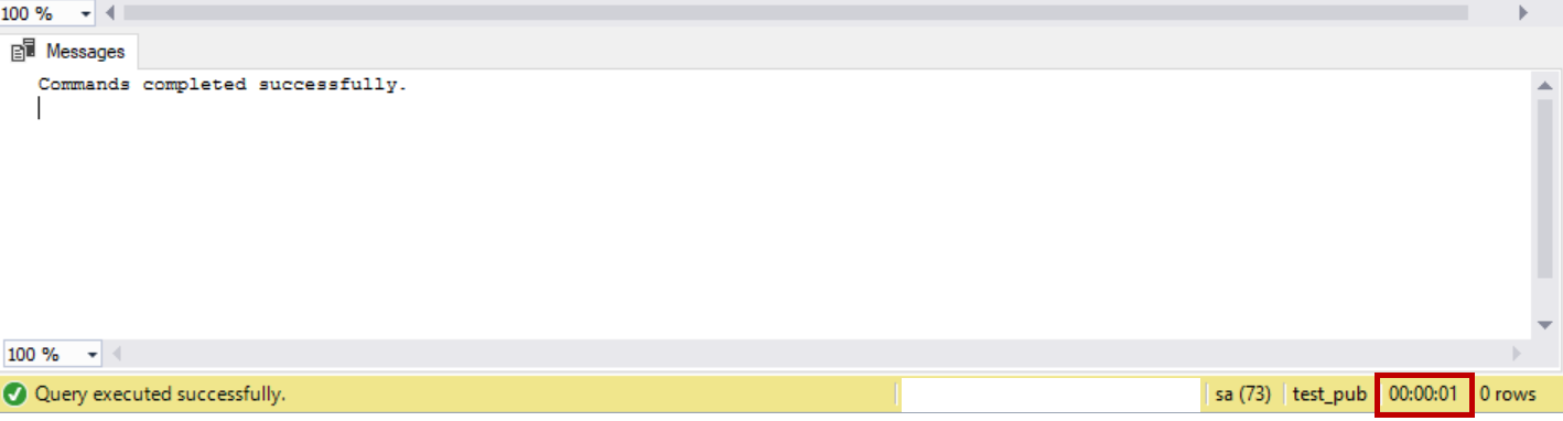 Now it took one second to add 10 new columns to the table “schema_test” because the SQL Server Replication internal objects were modified only once instead of 10 times.