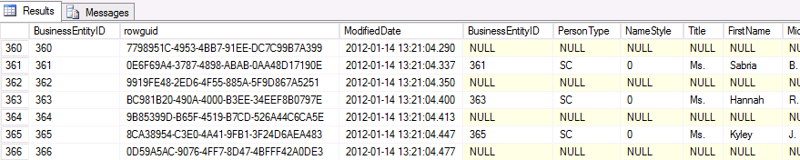 We can now take the list of persons based on the value of BusinessEntityId column from our CTE. To do so, we will use the INNER JOIN operation presented above.