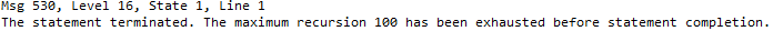 SQL Server limits the depth of recursion. By default, this depth is limited to 100. When this limit is reached, we will get following message: