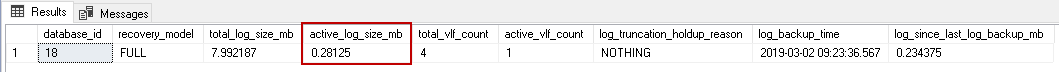 In the following screenshot, we can see a minimal change in the active log size from 0.085937 MB to 0.117187 MB