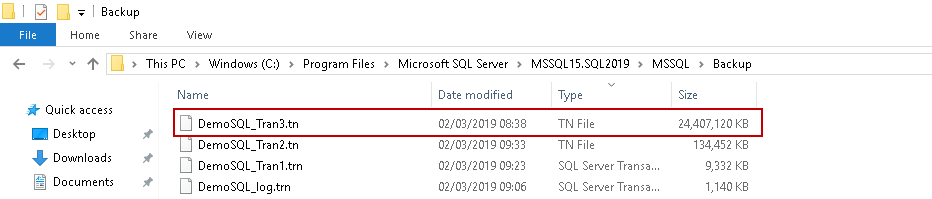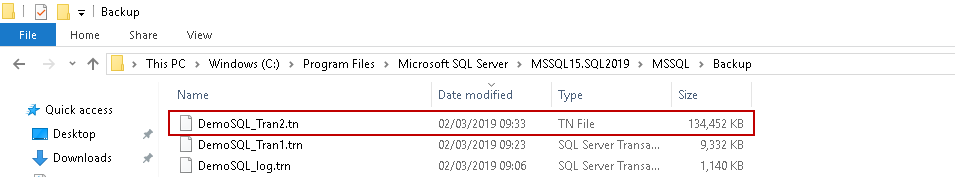 2. DemoSQL_log.ldf backup size 0 bytes
