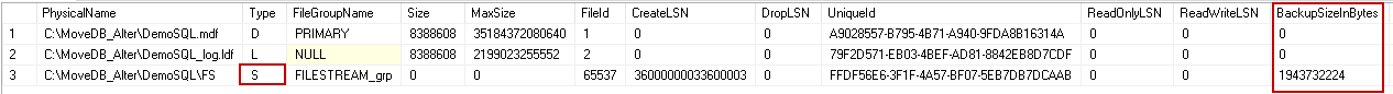 3. DemoSQL FILESTREAM files backup size 1943732224 bytes i.e. 1.81 GB.