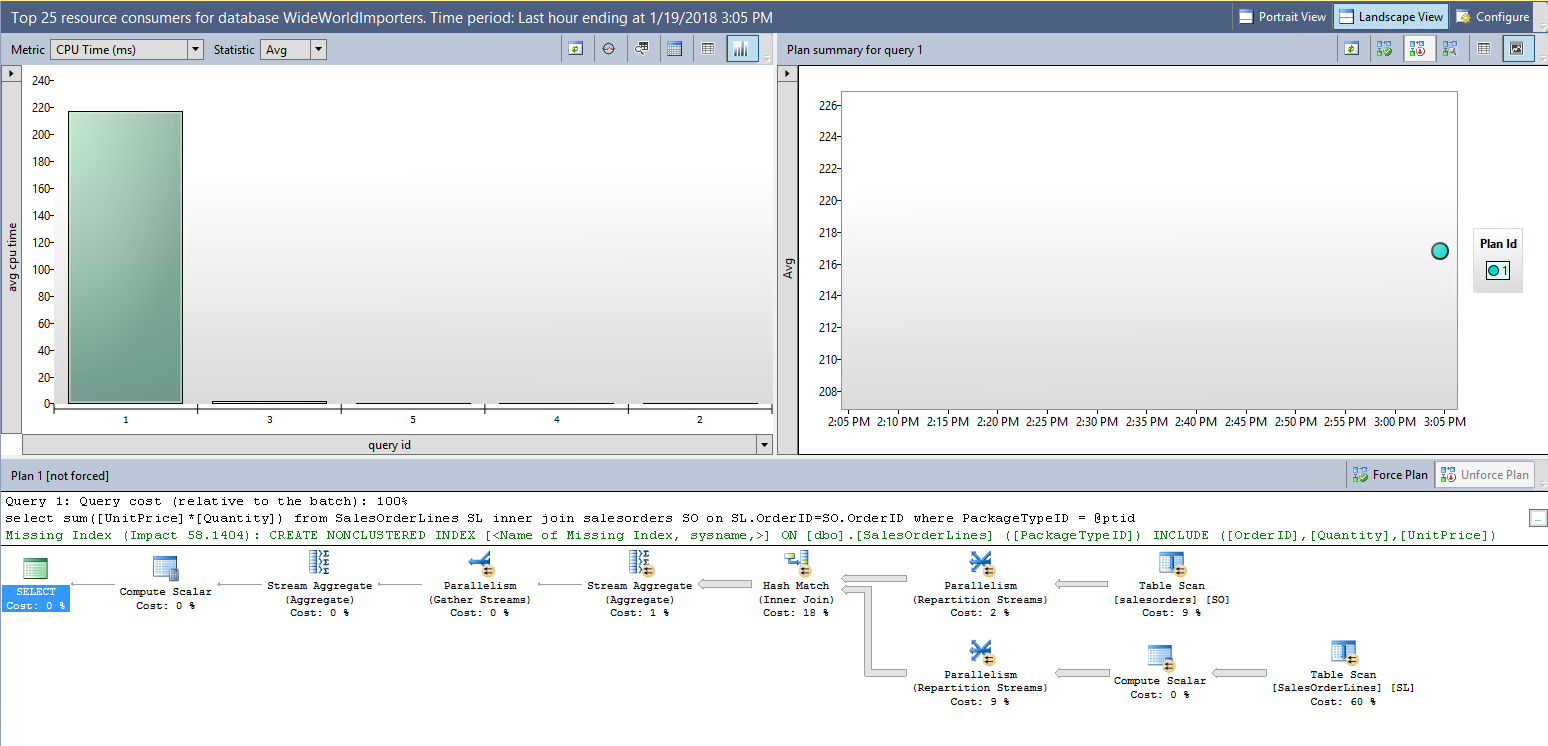ALTER DATABASE SCOPED CONFIGURATION CLEAR PROCEDURE_CACHE; EXEC sp_executesql N'select sum([UnitPrice]*[Quantity]) from SalesOrderLines SL inner join salesorders SO on SL.OrderID=SO.OrderID where PackageTypeID = @ptid', N'@ptid int', @ptid = 0; |