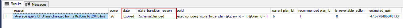 123ALTER DATABASE CURRENTSET AUTOMATIC_TUNING (FORCE_LAST_GOOD_PLAN = ON );GO -