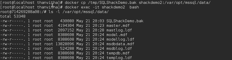 Docker cp /tmp/SQLShackDemo.bak sqldemo2:var/opt/mssql/data/