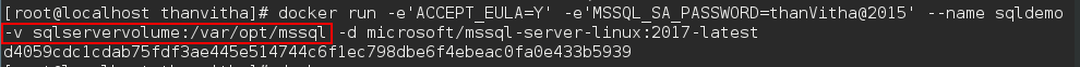#docker run -e'ACCEPT_EULA=Y' -e'MSSQL_SA_PASSWORD=thanVitha@2015' --name sqldemo –v sqlservervolume:/var/opt/mssql -d microsoft/mssql-server-linux:2017-latest |