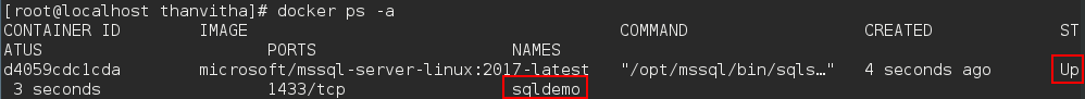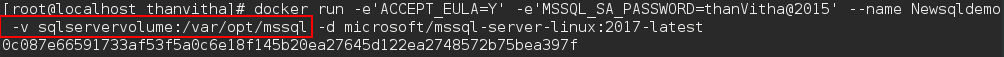 #docker run -e'ACCEPT_EULA=Y' -e'MSSQL_SA_PASSWORD=thanVitha@2015' --name Newsqldemo –v sqlservervolume:/var/opt/mssql -d microsoft/mssql-server-linux:2017-latest |