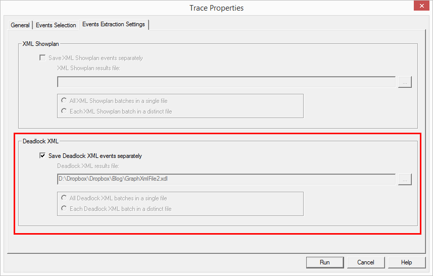 On the Events Extraction Settings tab you can choose to have the deadlock events saved to an XML File.
