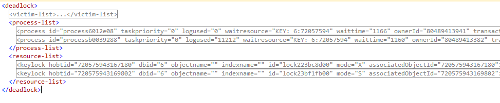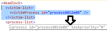 - The victim-list which actually only tells which process in next XML section has been killed by Deadlock Monitoring Thread.
