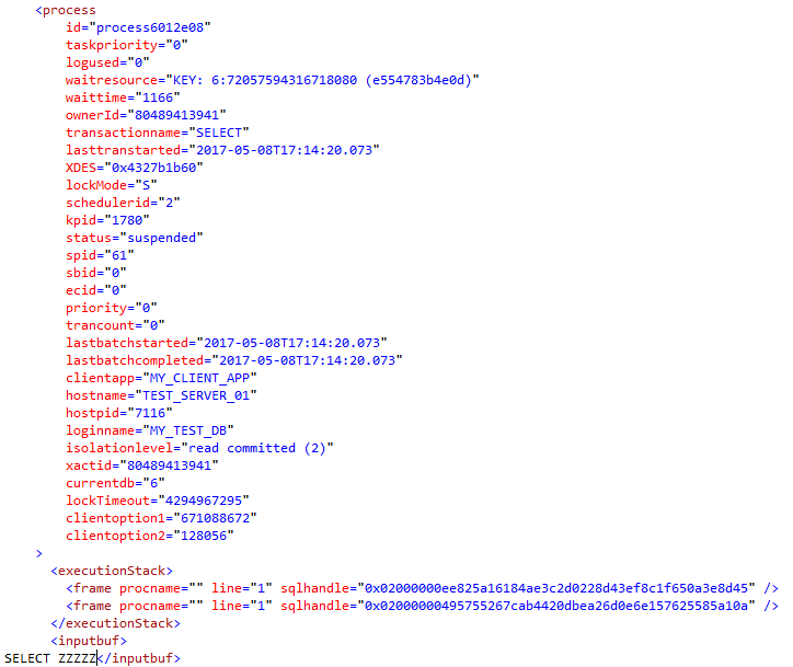 But we could have noticed that, for a single process, there can be multiple frame elements in the executionStack element and if we want to store extended information about queries (based on the value of sql_handle property), then we should shred the XML graph to that level of details.