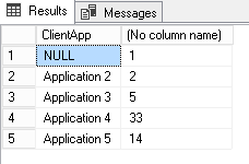 select TOP 5 ClientApp, COUNT_BIG(*) From dbo.ShreddedDL_Example --where isVictim = 0 group by ClientApp |