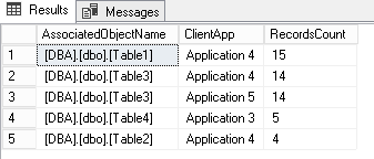 Until now, we just used one single column to get statistics but we could also combine columns. For instance, we could add the ClientApp column to tell that most deadlocks occurred with this application accessing that object. This is performed with following query:
