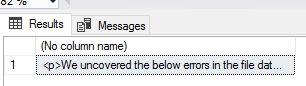 DECLARE @message VARCHAR(MAX) = 'We uncovered the below errors in the file data_20180101.txt: