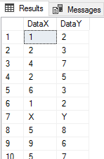 In the below example, our SQL bulk insert allows no errors – any value in the file that does not match what we expect in our table will fail. Additionally, we don’t specify options like KEEPNULLs because we don’t want any null values. We’ll set a business rule that DataY must always be greater than DataX, which we’ll check in a query. Both values must also be numerical values between 0 and 101. Because of this business rule, we’re using the smallest whole integer for our columns in the table – tinyint – and following our insert, we’re filtering out any records that aren’t between 0 and 101. In addition, we look for records where DataX exceeds the value of DataY.