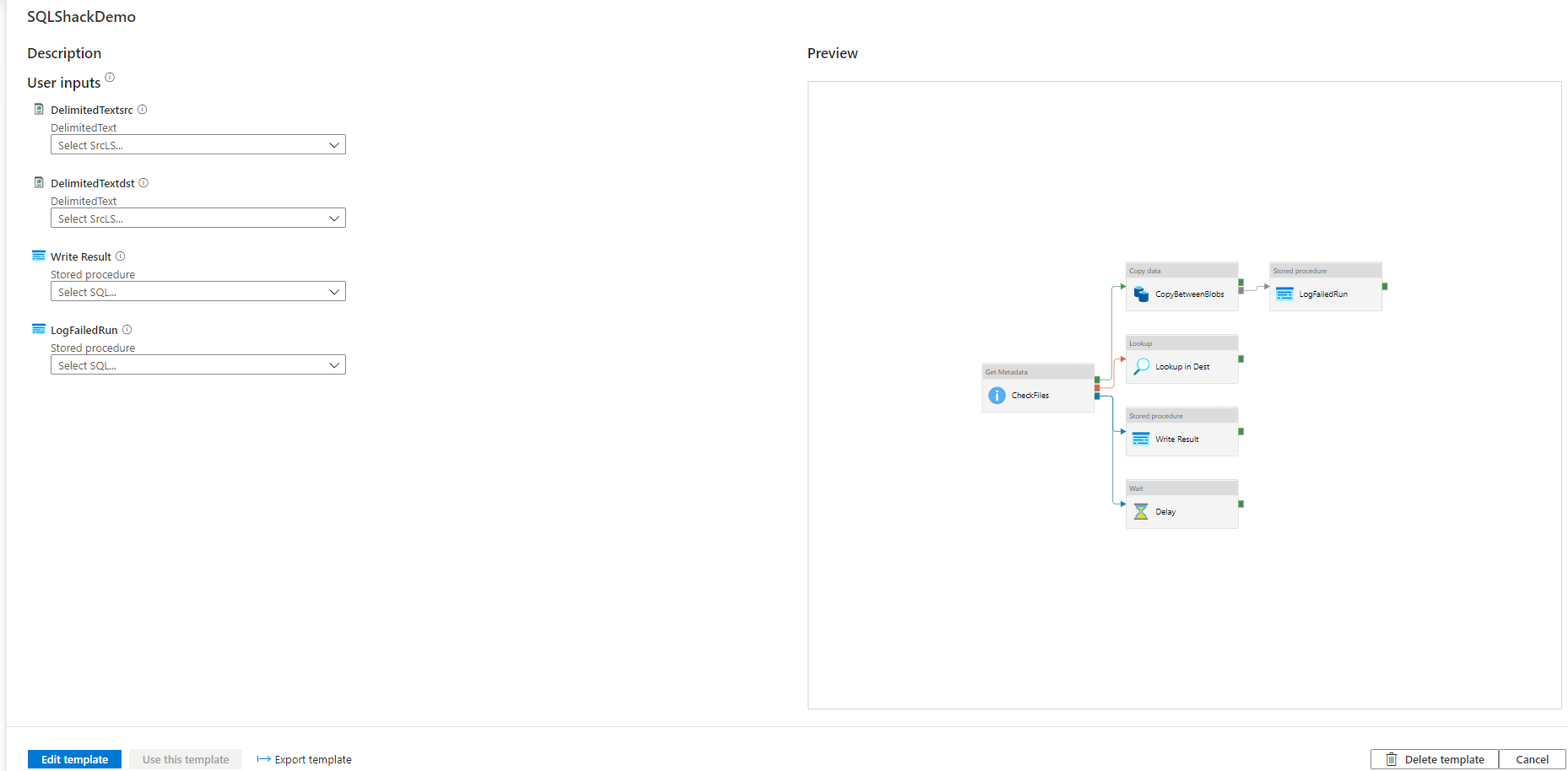 From where it can be Edited, Exported and used by different users to create similar Azure Data Factory pipelines, without the need to create it from scratch, as can be shown below: