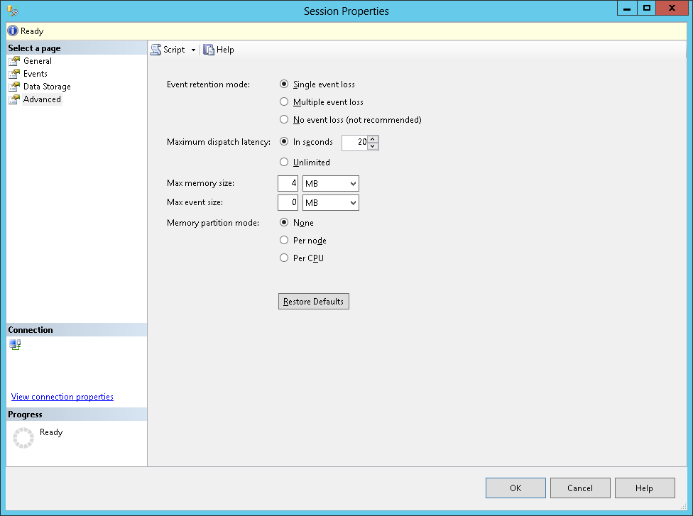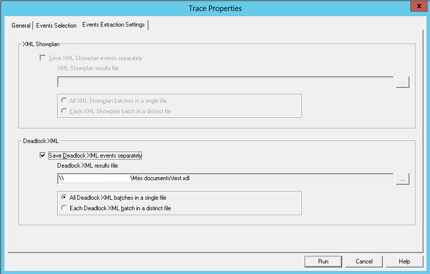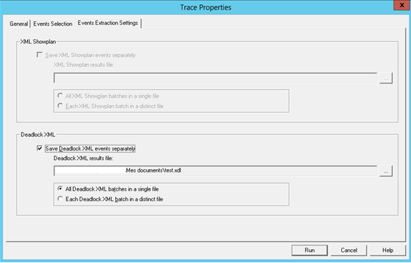 When this item is selected, we can go to the third tab and specify whether to save deadlock XML events in a separate results file. We will need to parse this file with a script or something else.