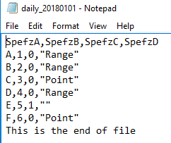 In some cases, files have first rows simply specify what we’ll find in the file and we can skip this row by starting on row 2 (or if there are several rows to skip, we can start on the row 3, 4, etc). In rarer cases, we may come across files that have an ending line that doesn’t match the format at all. Sometimes these have a sentence with a statement about the end of the file, or in some cases, they may have a line that says something to the effect of “File created at 2018-01-01 at 12 AM.” Since these don’t match the file format at all, they would normally throw an error, but like we can specify the first row of a file, we can specify the last row of a file.