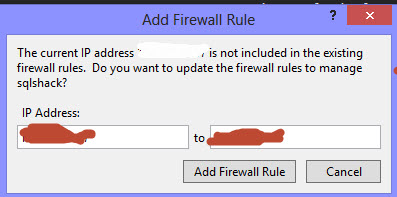 Figure 16. Adding Firewall Rule Now, connect to SQL Server using the credentials specified on step 7.