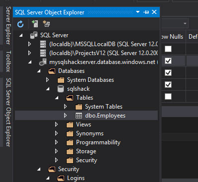Figure 24.The Data Tools Operations In the SQL Server Object Explorer, you will be able to see the table dbo.employees created.