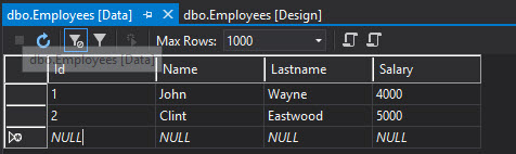 - If everything is OK you will see the Clint Eastwood information. Because his salary is higher than 4000 USD. John Wayne salary is lower, then his data is not displayed. As you can see, working with Azure using Visual Studio is a straightforward task.